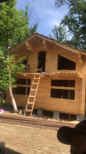 - Стены дома уже отшлифованы, имеют приятный древесный запах и цвет