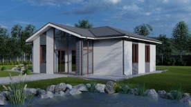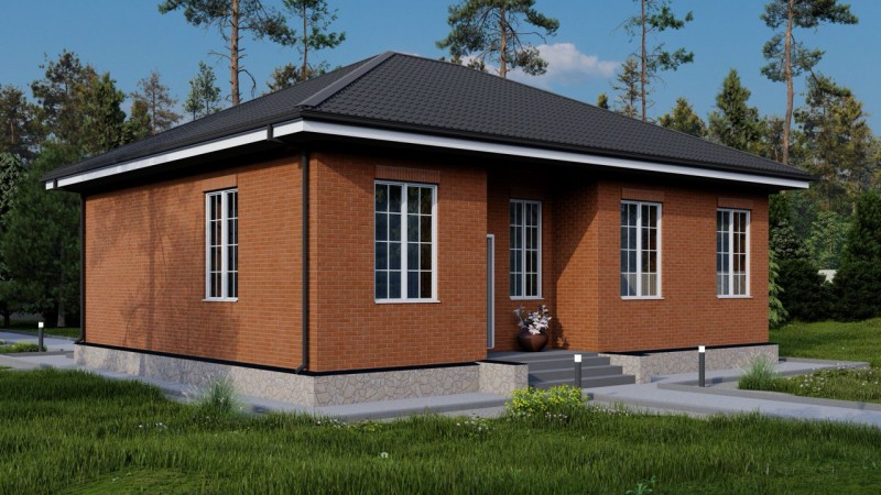 Проект одноэтажного дома в классическом стиле с вальмовой крышей, с гардеробной, постирочной и большой кухней. Имеется 3 спальни.